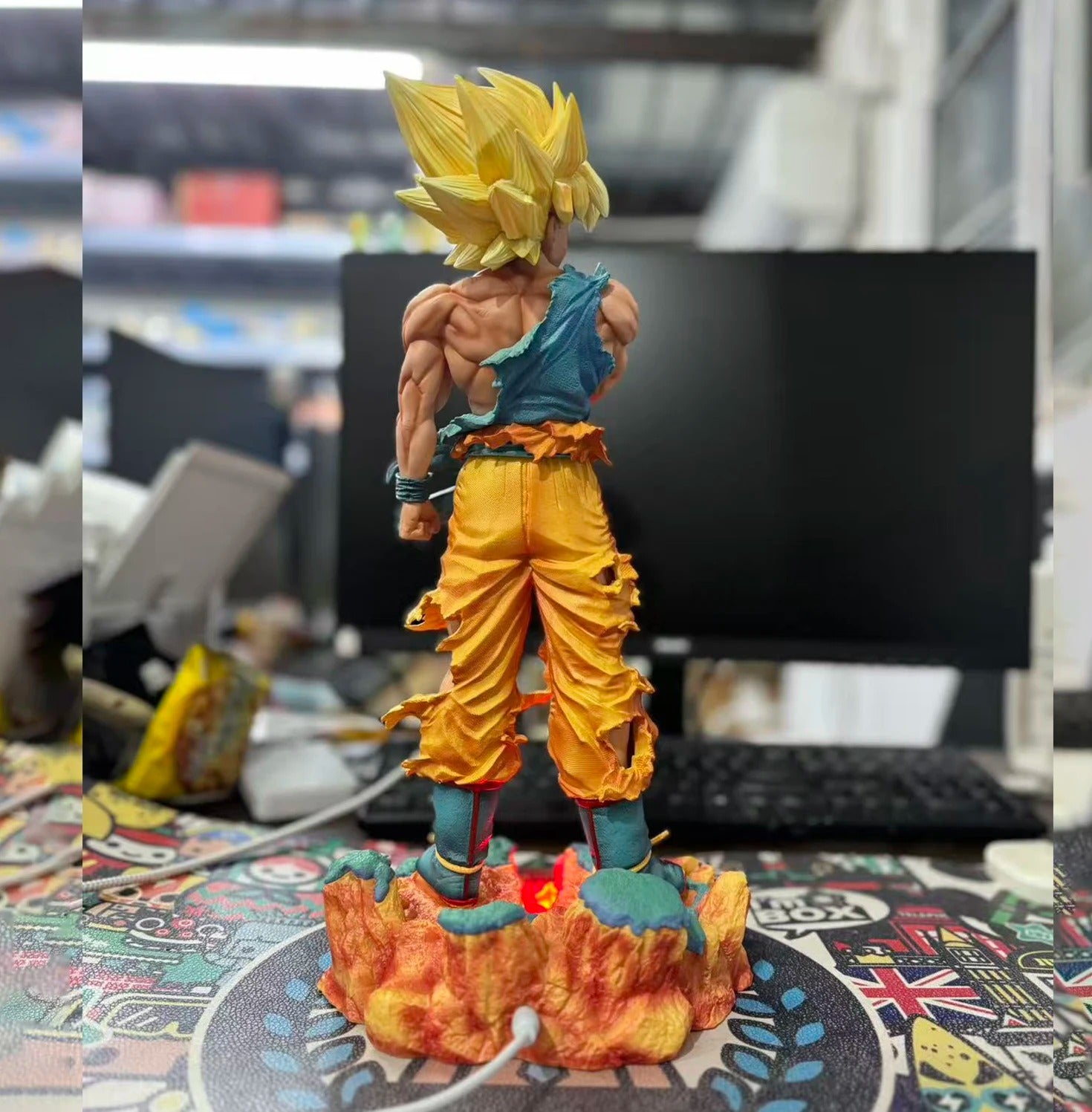 Découvrez la figurine Son Goku Dragon Ball Z Super Saiyan en PVC 38 cm, une statue collector imposante avec base décorative, incontournable pour tout fan de l'univers Dragon Ball Z.